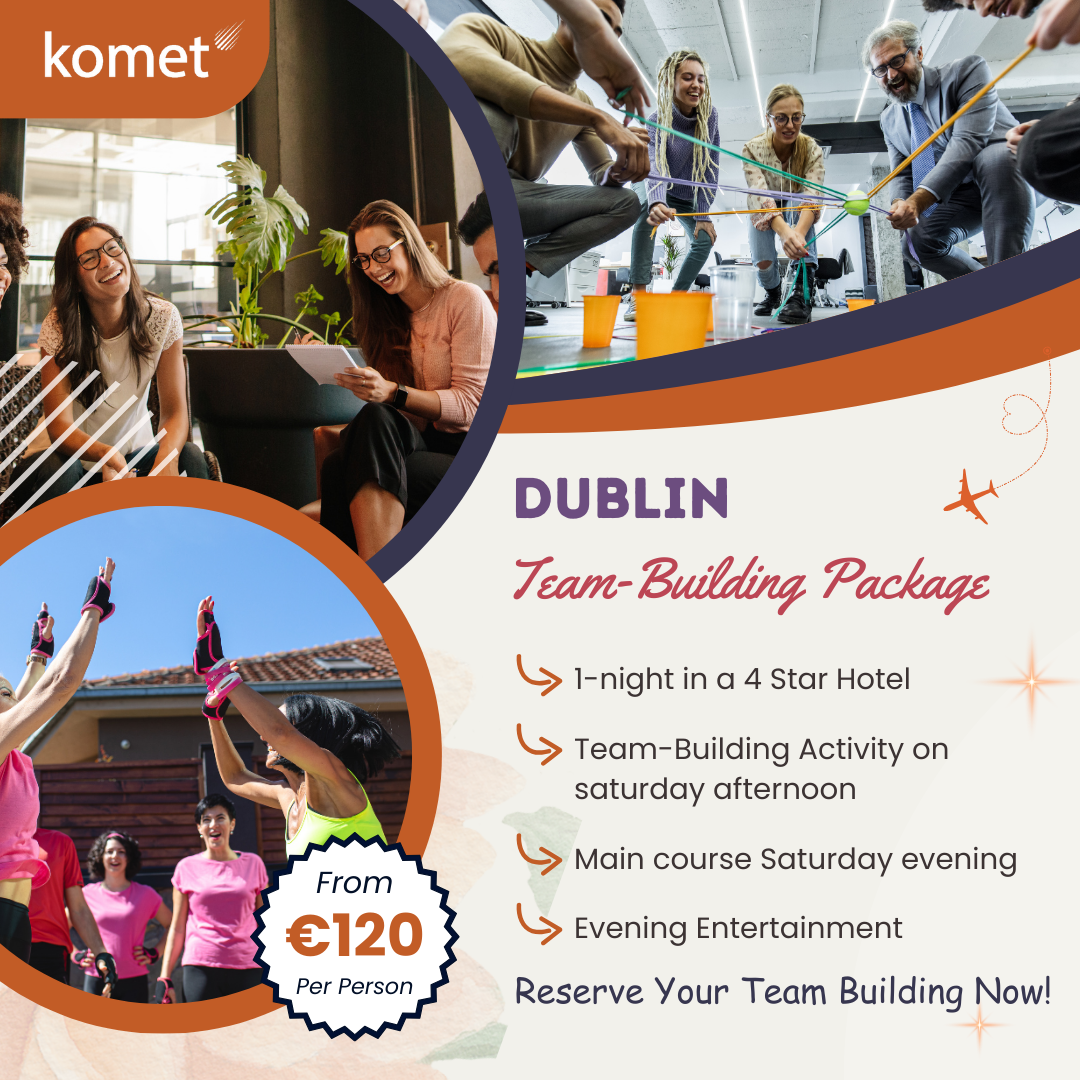 Our Corporate Team Building Dublin packages are designed to deliver fun, inclusive, and memorable staff experiences. Dublin is a top destination for team building and corporate events, offering endless opportunities for impactful gatherings. Komet.ie handles every detail, from planning to execution, so your team can focus on a rewarding experience. Explore our flexible, pre designed packages to suit all needs, budgets, and event types.